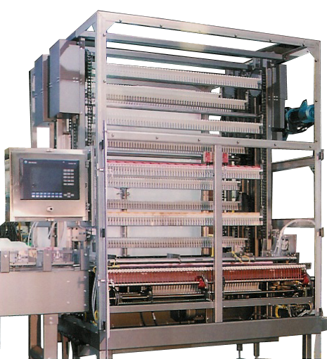 Dillin’s First-In, First-Out (FIFO) Accumulator utilizes a carousel design and can handle a full range of container and product types and sizes. Fitted with our patented RWave® transfer system, it gently places products on lift rails, eliminating any pushing and allowing for multiple rows of product to be accumulated on every rail if required. The FIFO Accumulator features a compact footprint while maintaining hundreds of feet of accumulation. Its open access and clear visibility enhances operator safety and efficiency.