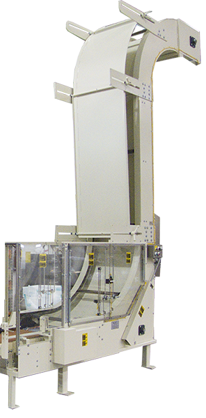 This Case Lift is ideal for lifting your diverse case sizes using minimal floor space. Each case is automatically fed into the continuously moving flight bars to be lifted to your specified discharge elevation. The heavy duty welded frame is constructed of 7 gauge painted steel. Contact us with your case dimensions and weight so we can provide you with the most appropriate detailed solution.